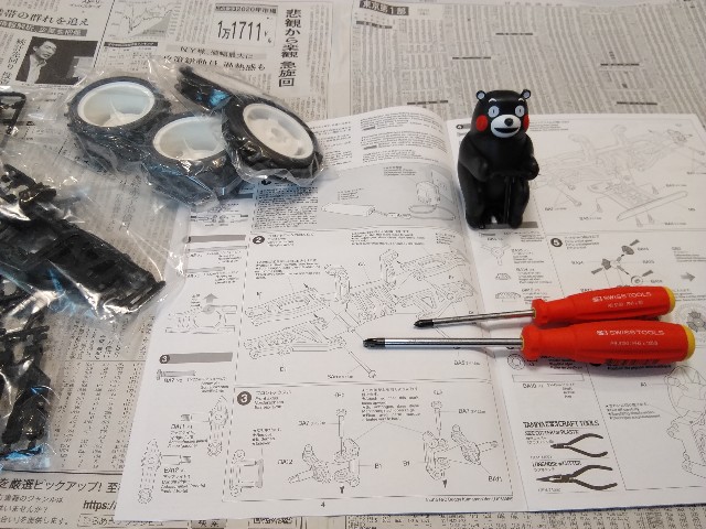 DT-02くまモンバージョンの製作に取り掛かりました。娘と一緒にラジコンができるので楽しみです。