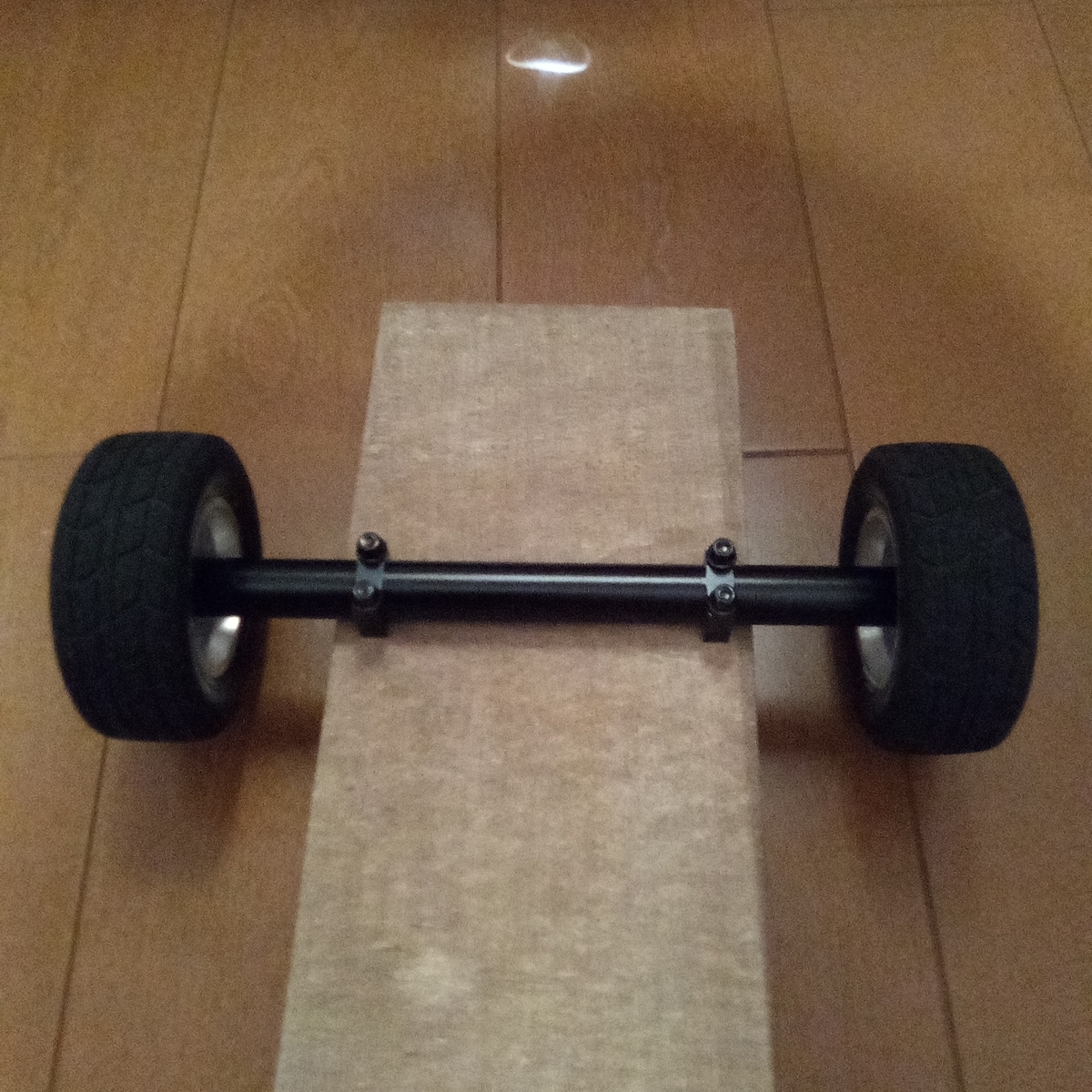 このトレーラー用アクスルは、はじめは2個買ってトレーラー部に4輪付くようにしようと思ってましたが、通販で処分品を2個ポチッたら、在庫が1個しかないというので、1個だけしか買えませんでした。